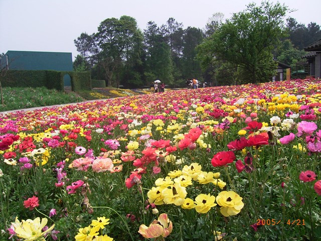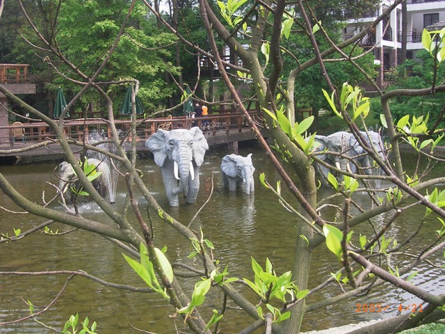 ラン)があります。レストラン前の池には石象の親子が水浴びをしています。その先は花海賽艶という草原となっており、そこには熱気球(50元)や洋弓場