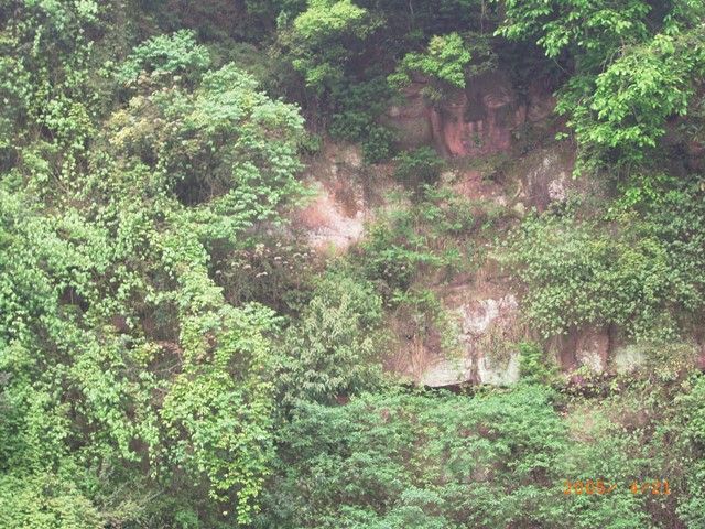 へと行き、引き返してから下流に向かいます。少し行くと、左手の千年来の古刹石象寺への上り口である石象寺嗎頭と反対の、右手の崖に摩崖仏が見えます。そ
