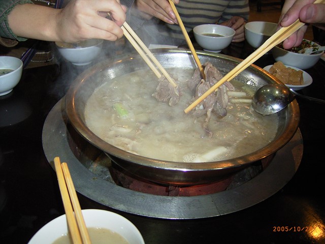 私も最近市場の食堂で、初めて羊腸のスープを食べました。美味しいですね~。白濁のスープはほとんど味付けしてなくて、塩と胡椒や辛味は自分で入れるようになっていました。私が食べたのは内臓だけをスープにしたものでしたが、それなのに羊がこんなに癖が無いなんて、吃驚しました。何事も先入観だけで、しり込みしたら損ですね。この羊の肉の鍋も美味しそうですね。