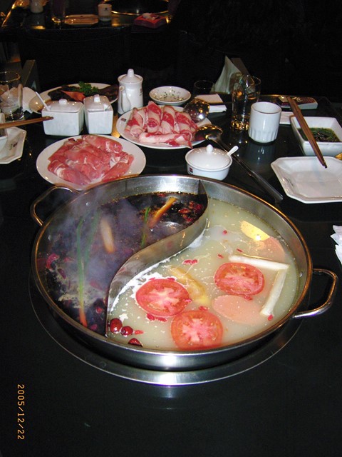 火鍋発祥の地は重慶市です。当地の河川労働者がエネルギー源として、また川の夜の寒気を乗りきるために、牛解体の後の余り物(臓物など、安価)を利用して、手軽に食べられるように工夫し出来たのが火鍋といわれています。ですから、唐辛子に代表される激辛であり、スープに牛脂を使用しているのです。なお、現在の火鍋店が重慶に出現したのは1930年代初めです。