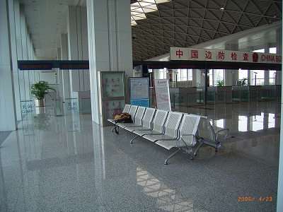 搭乗手続き(チェックイン)は出発時間の90分前から始まりますので、その時間になると、入口の係官が航空券確認の上で入場できます。その前に、入口前の左側に設置されているデスクで税関申告書(用紙もそこにおいてあります)の記入を終えておくといいでしょう。そして、①税関検査となります。規則では先の税関申告書を提出することになっていますが、申告すべき物がない人は緑道(グリーンランプ)に進めば、荷物(トランクなど)をX線検査にかけて問題がなければ、それで終りで、申告書を提出する必要はありません。ですが、経由地の北京の出国手続きで提出することになっているそうですから、一応手元に持っていておきます(実は、私の昨年からの経験ではそのことはありませんでした)。申告品のある人は、当然ながら、赤道(レッドランプ))に進んで、手続きと検査を行ないます。この場合はもちろん税関申告書の提出が必要となります。