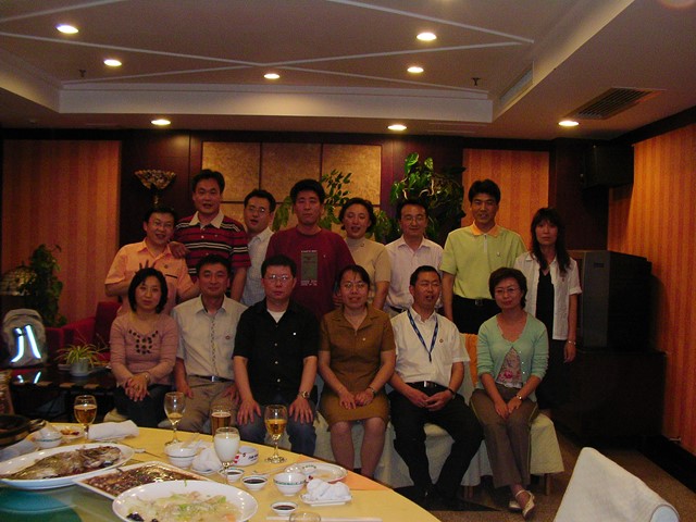 中国国内で卒業生が一番集中しているのは遼寧省大連市でしょう。ここでは「西安交通大学日本語学科卒業生学友会」が組織されています。1期生を筆頭に、2004年卒業の15期生まで、現在22名ほどが掌握されています。毎年新年会を開き懇親をはかるとともに、母校の教員などの来訪に際しては歓迎宴を設けています。下の2枚の写真は、今月に大学の業務で訪れた趙剛教授と張文麗先生(5期生)を囲んだ歓迎宴の記念写真で、13名の卒業生が出席しています。私も2004年の国慶節の休暇で訪れたとき、卒業生に大変お世話になりました。中国各地の卒業生の中で、おそらく大連の卒業生がもっとも相互の関係が密でしょう。当地の卒業生は日本語の教師をはじめ、政府機関・国有企業・日本企業、それに事業を起こした人など、各方面で活躍しています。そして、ある日本企業から無条件で新規採用するといわれたほど、西安交通大学日本語学科は高い評価をえています。