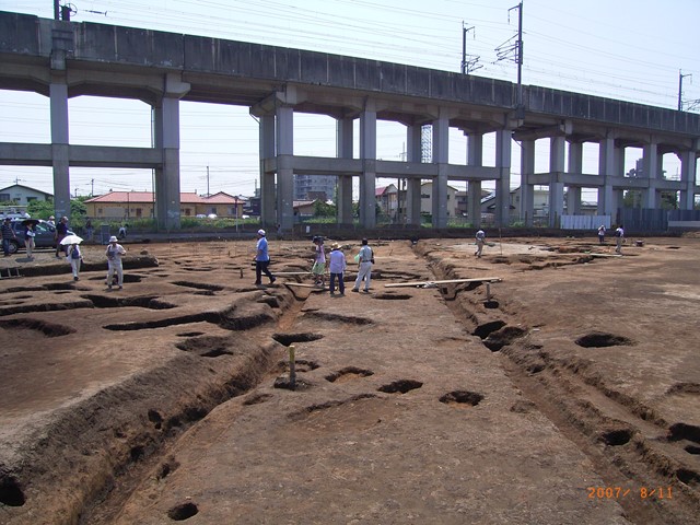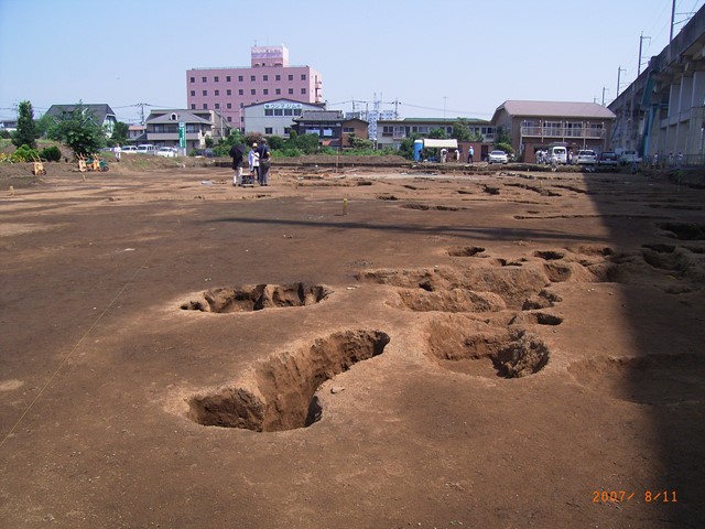 2007年8月11日(土)10時から栃木県小山市神鳥谷字曲輪の「神鳥谷曲輪(ひととのやくるわ)現地説明会」が開かれました。同遺跡地内の開発に伴う発掘現況の説明会です。当日は夏の晴天で猛暑の中、50名を超える参加者があり、小山市教育委員会秋山隆雄氏から、遺跡の発掘成果と出土品に関して説明がありました。