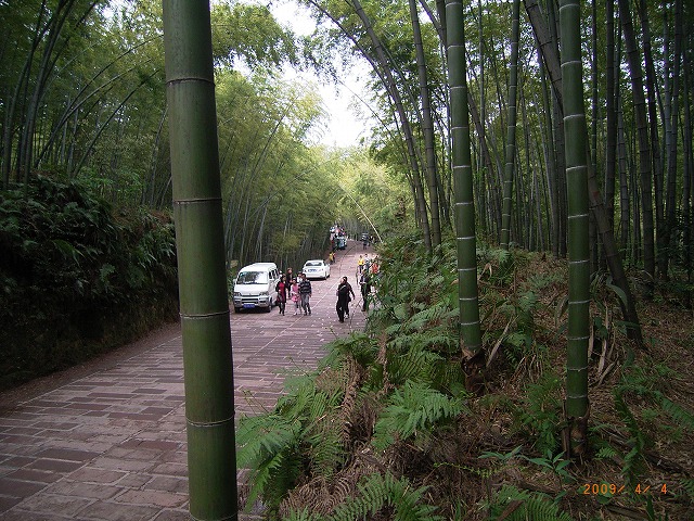 今回、清明節(4月4日)の休日を利用して、1泊2日のツァーでここを訪れました。ツァーの概況は、1日目、朝成都出発・宜賓市昼食・午後蜀南竹海観光(竹海博物館・翡翠長廊・忘擾谷)、2日目、午前観光(仙寓洞・天宝寨・海中海)・午後観光(七彩飛瀑)・夜成都着でした。四川省中国青年旅行社を利用し、340元でした。この料金はシーズンとなると値上がりします。なお、入場料や食事代は含まれていますが、ロープウェー往復40元・竹筏4人60元は含まれていません。