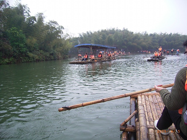 次に海中海に向かいます。10時10分到着しました。海中海とは竹海中の湖ということです。ここでは竹筏で、湖を巡ります。写真7が竹筏で湖を巡っている様です。私たちの時には待ちはありませんでしたが、岸に戻ったときは、乗船待ちの観光客でいっぱいでした。11時10分過ぎにバスに戻りました。以上で、午前の観光を終え、竹海の中で昼食です。