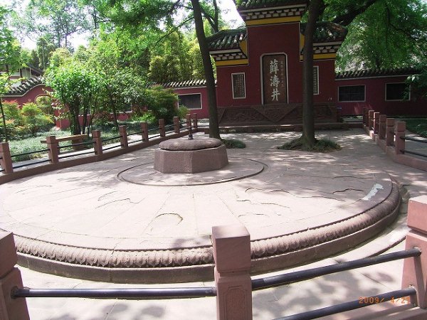 写真2は薛涛ゆかりの薛涛井です。薛涛箋という原稿紙を成都の井戸の水で薛涛は作ったとされています。これにより、明代初期から中期に当時の蜀藩王がこの井戸の水で薛涛箋を模して作ったところから、これを薛涛井と呼ぶようになったとのことです。