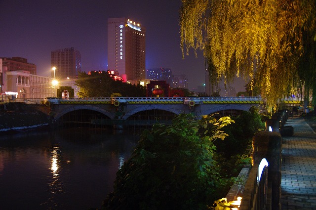 錦江は成都市内を西から東に流れる府河と南河(両川とも都江堰市で岷江の分流となる)の別称で、両川は市内東南で合流し、府河として黄龍溪を経て、眉山市彭山県で再び岷江と合流します。90年代に入り、汚染などで荒れていた両川を整備し、現在では、錦江は両岸に遊歩道公園などが設けられ、市民の散策の場として親しまれています。特に、一環路内主要部は夜間照明がなされ、橋共々ライトアップされるようになっています。そこで、望江楼公園から人民南路までの錦江夜景を紹介することにします。