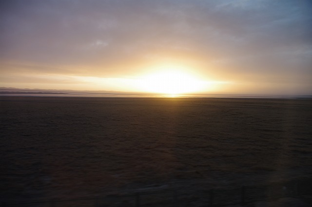 写真1は、西寧から青藏鉄道に入り、青海湖にさしかかったところで、ちょうど日没時になったものです。18時11分でした。成都からさらに西に行っており、中国は全土を北京時間で統一しているので、1月初旬でこの日没時間となるのです。
