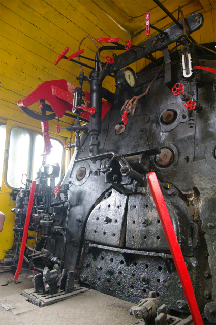 写真1は、道路側から北に本車を横正面にとらえたものです。赤く塗装された四つの動輪が映えます。本車8328号は炭水車の表示に「包段」とあることから、呼和浩特(フホトト)鉄路局包頭機関車区所属であったことになります。また、煙突部の赤いプレート表示から、1988年大同機関車工場製造であることが分かります。