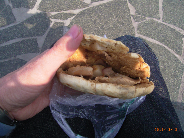 写真3は、鍋魁を開いて写したものです。今回のは鍋魁夾鹵肉です。豚三枚肉を塩煮込みしたのをぶつ切りにして挟み込んだもので、タレも醤油系で、四川料理に多い麻辣系味ではありません。むしろ味は肉夾馍に似たものがあり、それよりあっさりしています。