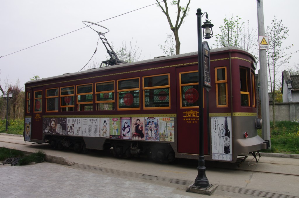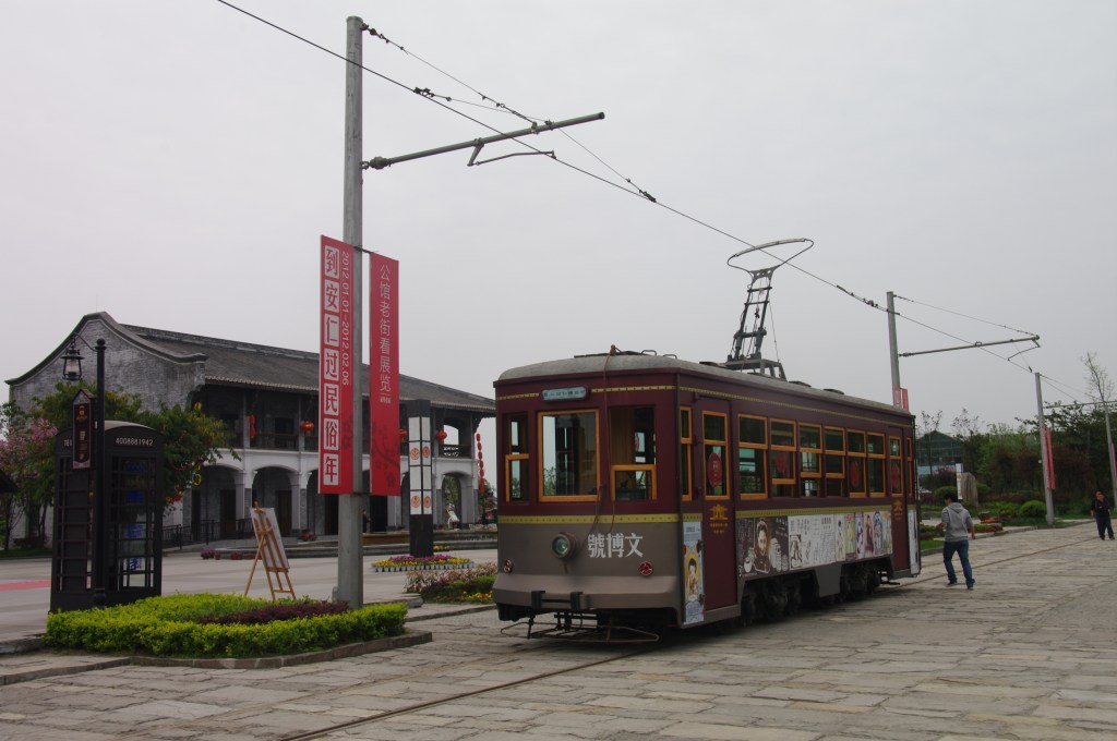 2012年4月5日(木)に行った大邑県安仁鎮にはレトロな有軌電車(路面電車)が運行されています。大邑劉氏庄園を参観後に乗車したので、これを紹介します。2011年月春節(2月)に開通した有軌電車は、有軌電車總站(劉氏庄園・老公館)と游客中心站(老街・樹人街)との1.8kmを結んで、途中、新公館站(安仁民俗館)・劉湘公館站・安仁老街站・民国風情站の4停留場が設けられています。運行時間は9時~17時30分(土日は8時30分~18時)です。所要時間は約20分です。運賃は片道10元です。運行間隔は乗客があり次第で随時です(私が乗車したときは私のみで、駅舎内で係員に乗車したい旨を伝えると、10分ほど待ってくれと言われ、駅舎外のベンチで待機して乗車しました)。なお、南側に延伸して全長5kmの環状線として完成させる計画となっています。
