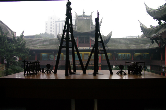 最後の写真8は、竈房を下ったところに展示している大地車(絞車)です。道光年間のもので4.5m・高2.5mです。ここには他にも塩井掘削関係の道具が展示されています。
