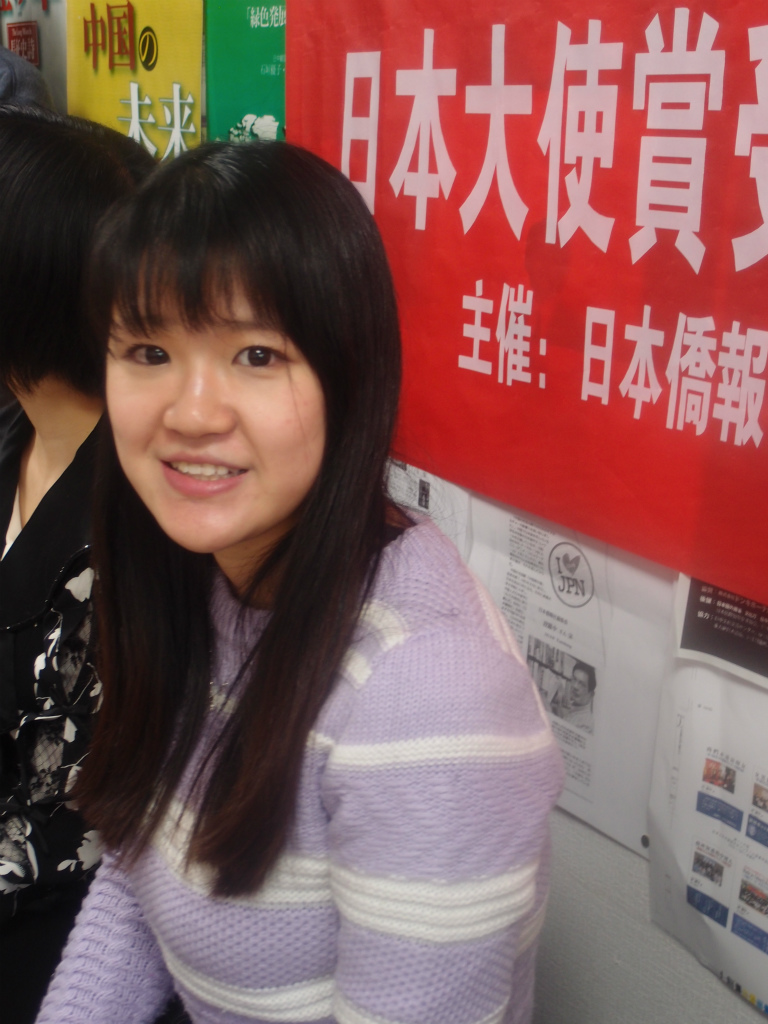 写真は集いにおける姚儷瑾さんです。この後、場所を移して姚儷瑾さんの歓迎宴を行い、大いに盛り上がりました。