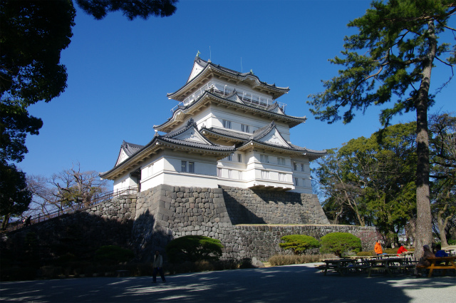 箱根への帰り、2014年1月29日午前、小田原城を巡りました。そこで本城を紹介します。室町時代後期、15世紀末に大森氏により築城されたと伝えられ、戦国の後北条氏の関東支配の拠点として、延長約9kmに及ぶ総構を持つ規模の城に発展しました。1590(天正18)年、後北条氏が滅亡して、徳川家康が入部すると、家臣の大久保氏が城主として、現在の地に改修された近世城郭を築き、忠隣改易後、破却されますが、1632(寛永9)年の稲葉氏の入部後、再改修がなされて城は一新します。その後、大久保氏が再度入部し、元禄地震により壊滅的被害を受けて再建し、明治維新に至ります。が、1870(明治3)年に廃城となり、天守閣を始め解体されてしまい、また関東大震災(1923年)で石垣などに甚大な被害を受けました。戦後、城の復興事業が市により行われて、1960(昭和35)年、天守閣が鉄筋コンクリート造りで復興され、以後復興事業が継続されて現在に至っています。
