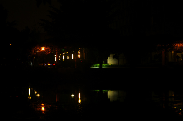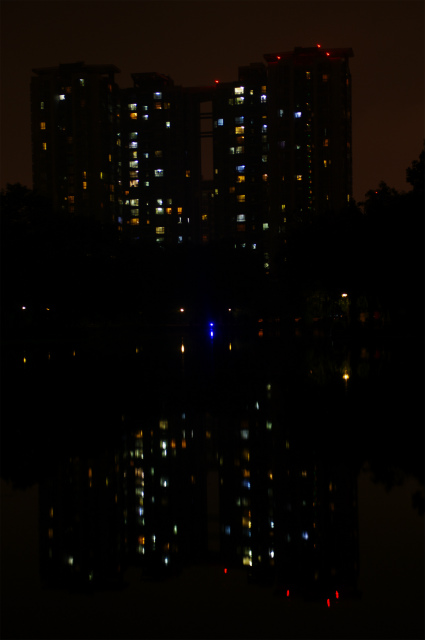 西南交通大学九里堤校区には鏡湖という池があります。池を通したキャンパスの夜景を御覧に入れます。
