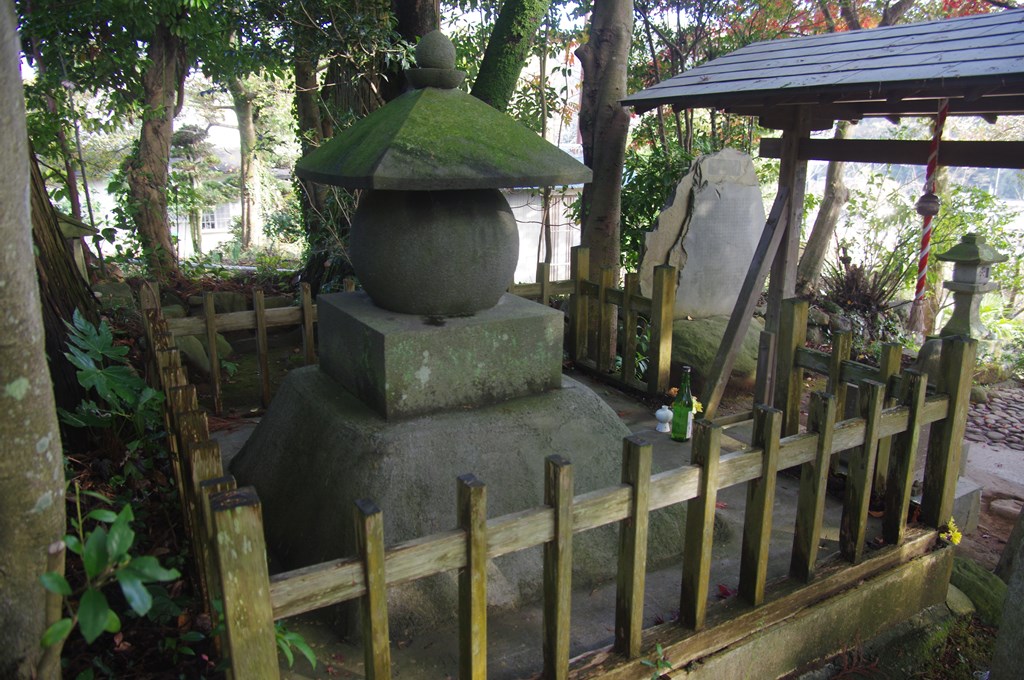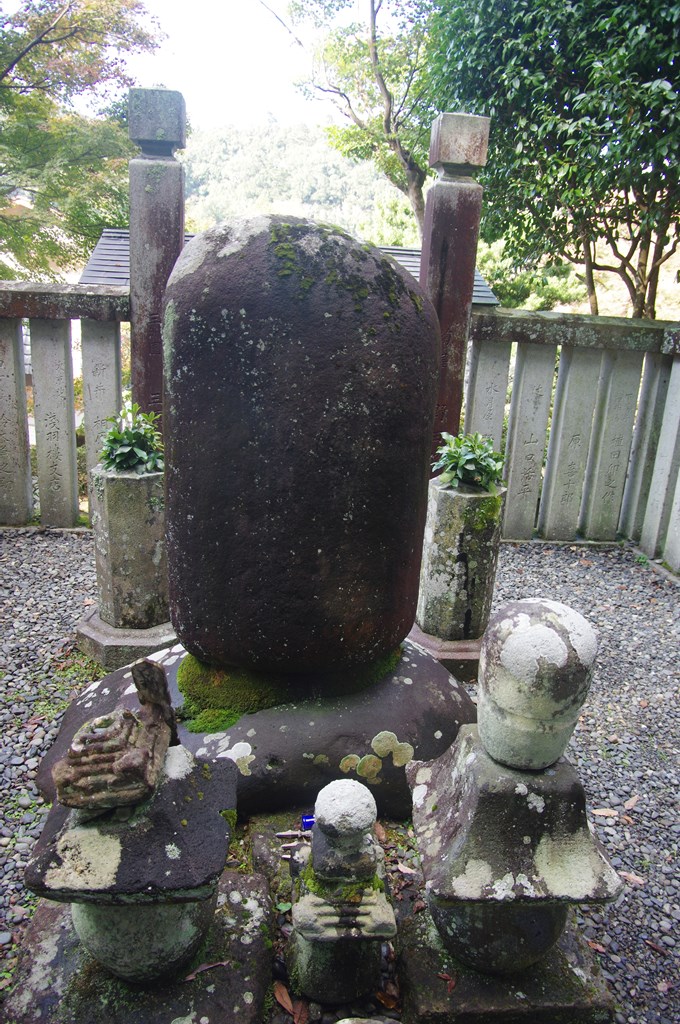 修善寺から南に桂川を渡ったところが鎌倉幕府2代将軍源頼家墓です。1203(建仁3)年9月、頼家は比企氏の変(実体は舅北条時政クーデター)で将軍を追放されて、伊豆国修善寺に押し込められて、次いで翌年7月、暗殺されます。写真2が、墓正面です。中央の石碑は1704(元禄4)年の5百周忌に修善寺住職智船が建立した供養石碑です。その後方に2基の小五輪塔が残存して、これが墓とされています。