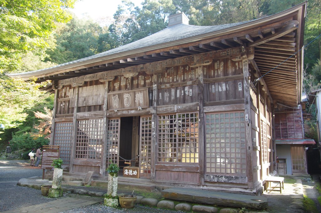 頼家墓の西(右)の建物が写真4、指月殿です。頼家の冥福を祈り母北条政子が建立したと伝えるもので、伊豆最古の木造建築物といわれます。