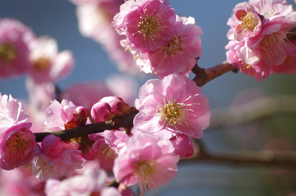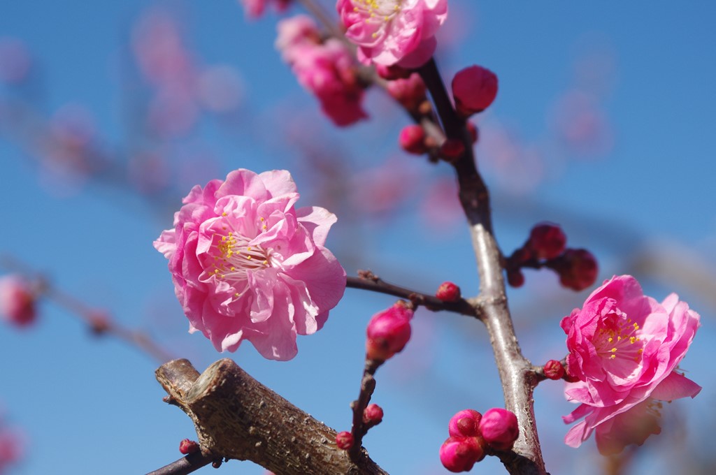 盛りは過ぎましたが、青空の澄み渡る2016年3月1日〔火〕午前、大倉山公園に梅花を撮影に行きました。そこで、そこの代表的な梅花をお見せします。