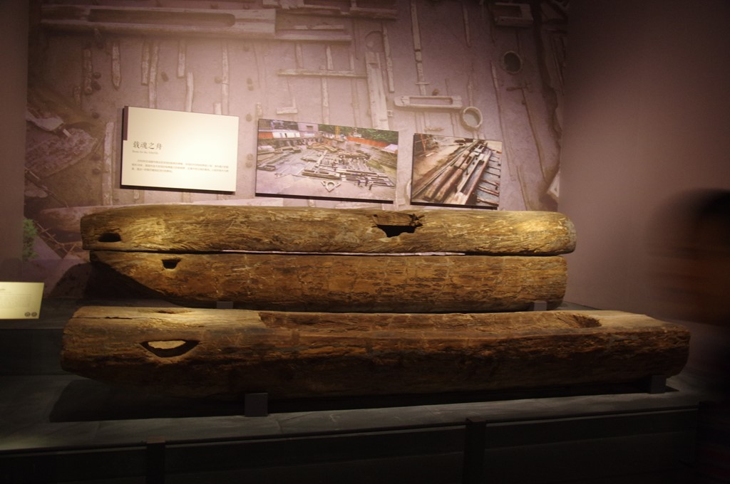 さらに、晩期蜀文化(BC500~316年「鼈霊=叢帝(開明)」、春秋晩期~戦国期)と続きます。写真2は、成都市商業街船棺葬遺跡(戦国期)出土の船棺です。