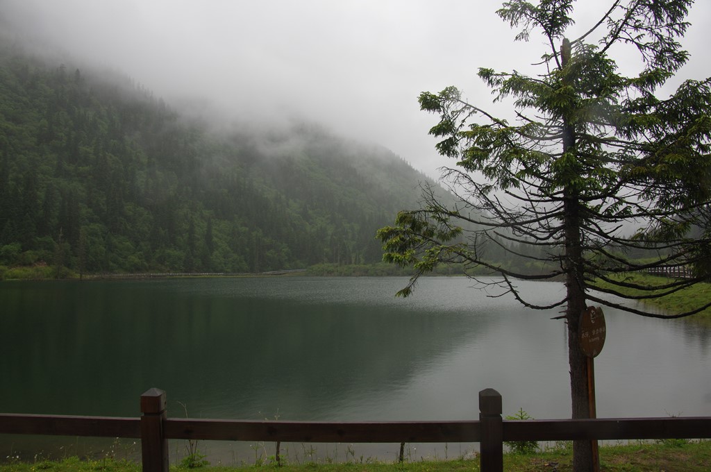 紅軍湖(長征の紅軍がこの地を通過したことからの命名)を車窓から過ぎ、次に下車したのが、写真2の、澤娜措です。ここも霧が立っています。湖の奥に見える集落はチベット族の上達古藏寨です。なお、本湖横に中達古藏寨、紅軍湖横に下達古藏寨があります。