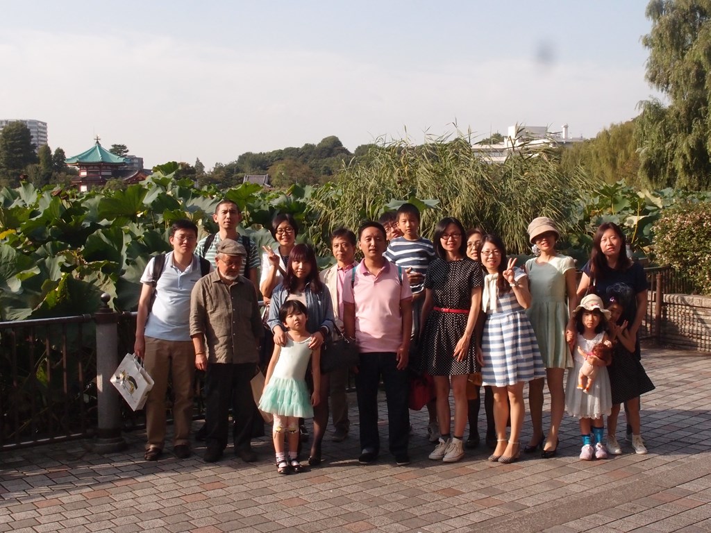 写真2は、不忍池前での記念撮影です。
