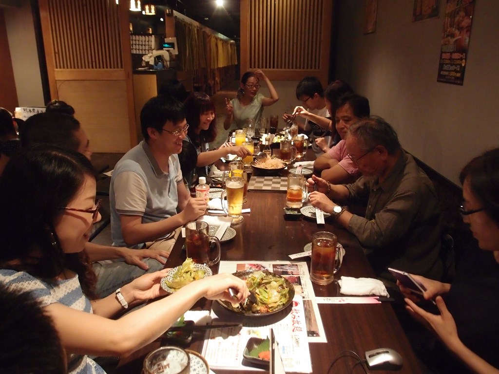 2015年10月3日(土)昼、国際交流基金の日本語教員研修で来日中の老師、符抒(94年入学10期生・電子科技大学)・張偉莉(西安交通大学)両先生を歓迎のため、上野の「九州料理個室居酒屋 炎」に集いました。関東在住及び日本出張中の、93年入学9期生から98年入学14期生までの10名、他が参加しました。お子さん連れの卒業生もかなりいました。