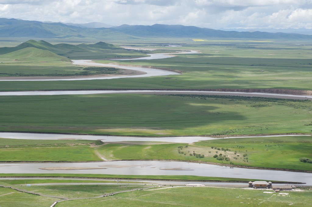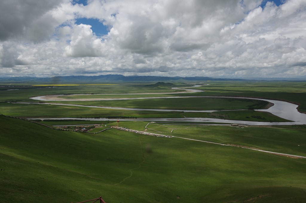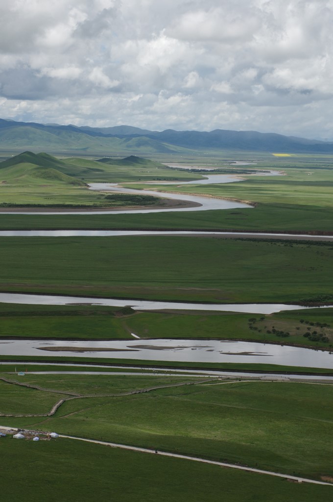 黄河九曲第一湾は西からの黄河本流が南からの白河と合流して北に流路をかえるところで、四川省・甘粛省の省境でもあり、ここで黄河は大きく蛇行します。標高は約3500mの高地です。本景区の入場料75元・エスカレーター代30元(登りのみ)・保険代5元で、8時30分~18時開場です。成都からの交通は茶店子発若爾蓋行で県城到着後はタクシー利用(約70km強)です。