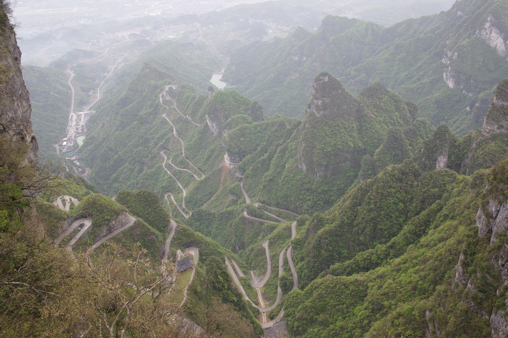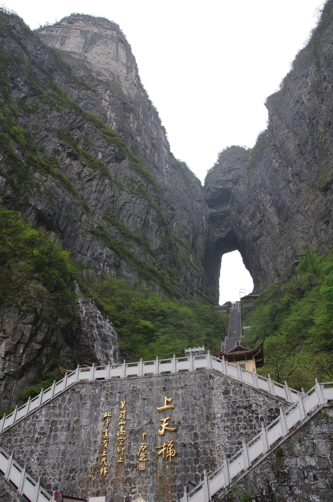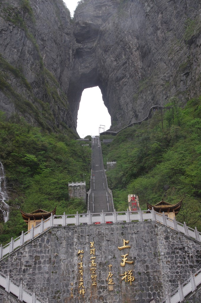 最初の観光地は天門山です。天門山国家森林公園は湖南省張家界市永定区黎坪に位置します。まず、7455mの天門山索道(ロープウェー)で上ります。約30分の行程で世界一長いものです。