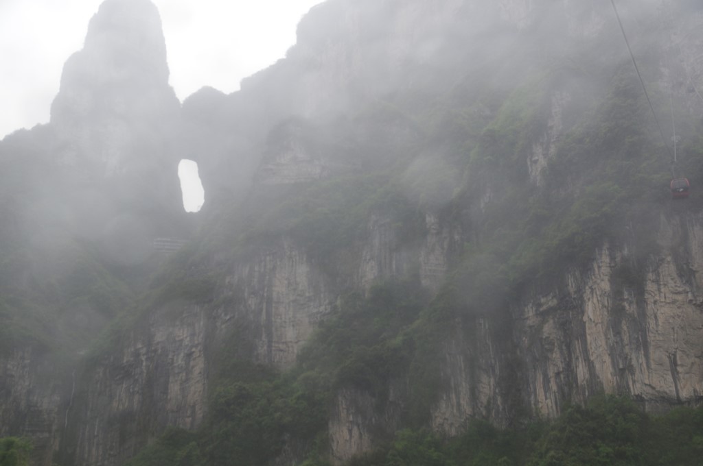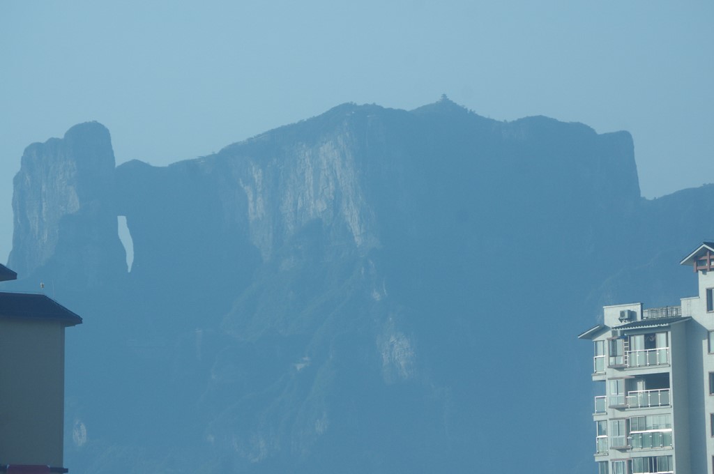 付けたりの写真13は、24日(月)朝、張家界国際大酒店の部屋から遠望した天門洞です。マンション間に見えたのを望遠で引きつけました。
