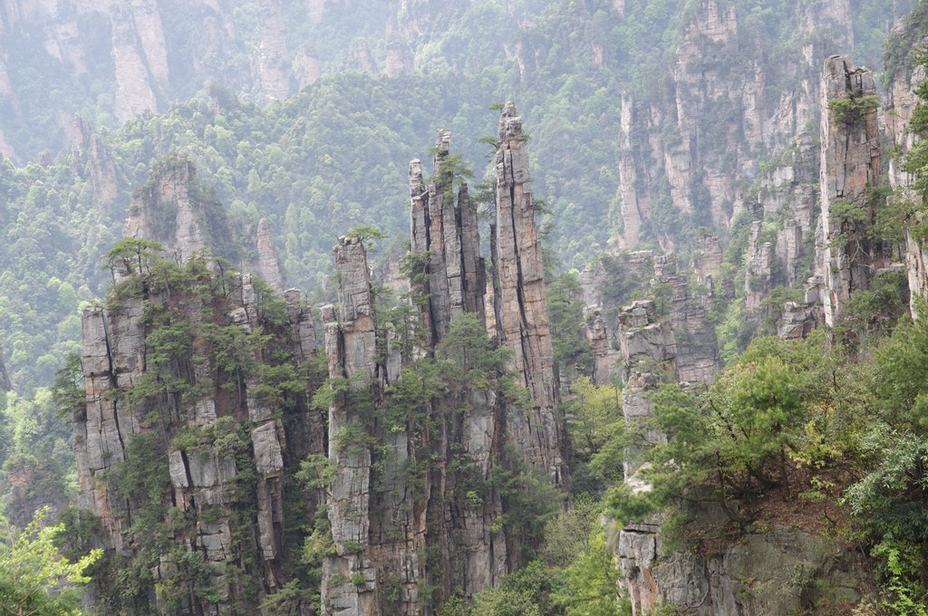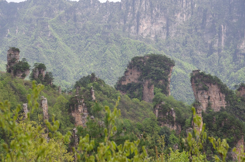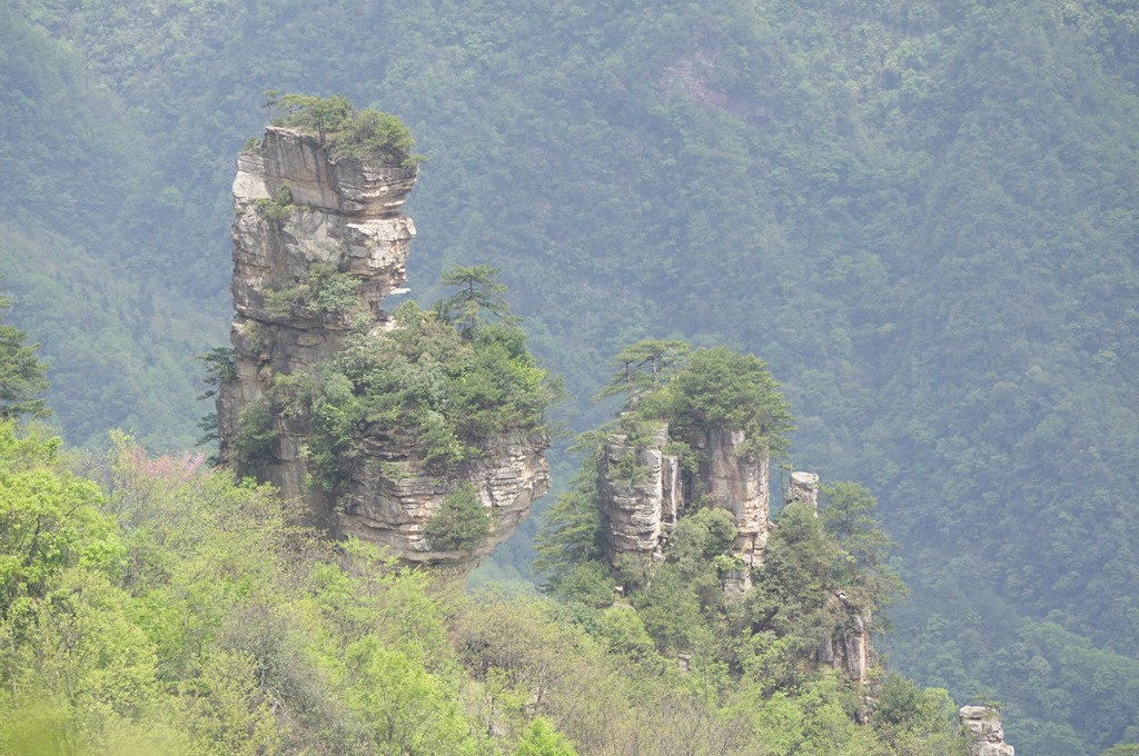 賀龍公園を過ぎて天子閣の先にある御筆峰が最初の観光地です。写真1は、西側に位置するこの全景です。