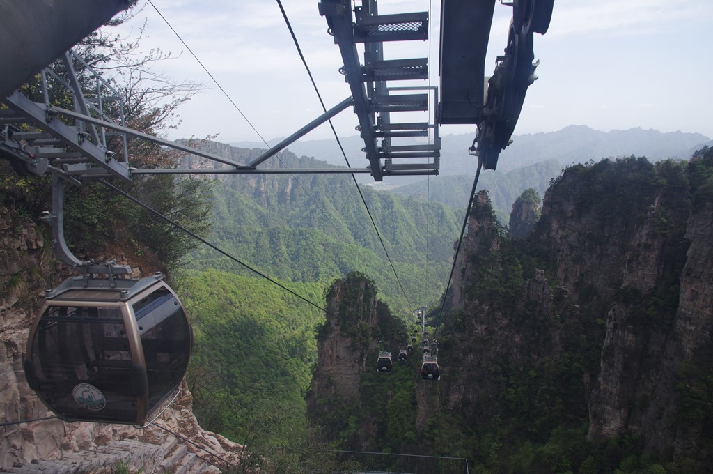 天子閣から専用バスで天子山索道上站に移動しました。写真9は、上站から撮ったものです。現在の8人乗りの天子山索道は2016年2月に開通して、全長が2091mで乗車時間が6分間です。