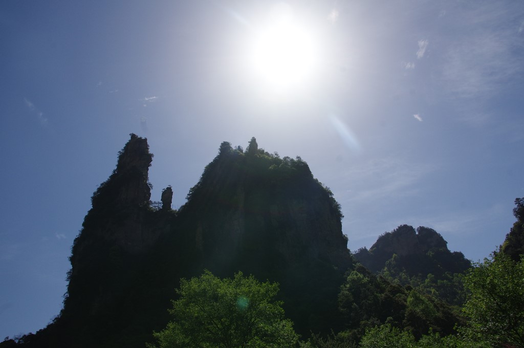 写真3は、本渓谷中間点で小さな広場となっている南亭の所に立っている保塔峰です。時間の関係でここから戻りです。
