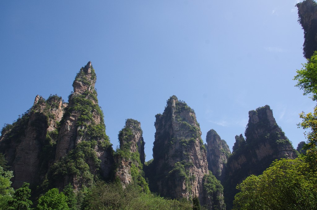 23日(日)午前最初の観光は武陵源風景名勝区の索渓峪自然保護区の金鞭渓景区です。本景区最下流の水繞四門まで専用バスで移動してから、前日の観光が三条からと異なり、渓谷を徒歩となります。