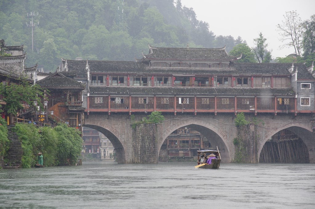 24日(月)午前、張家界から鳳凰へ高速道路経由で移動です。昼食後、午後は鳳凰古城観光です。鳳凰古城は湖南省湘西土家族苗族自治州鳳凰県沱江鎮、州都吉首市から南52kmの距離にあります。本古城は明嘉靖35年(1556)に創建されてから約400年余の歴史があります。