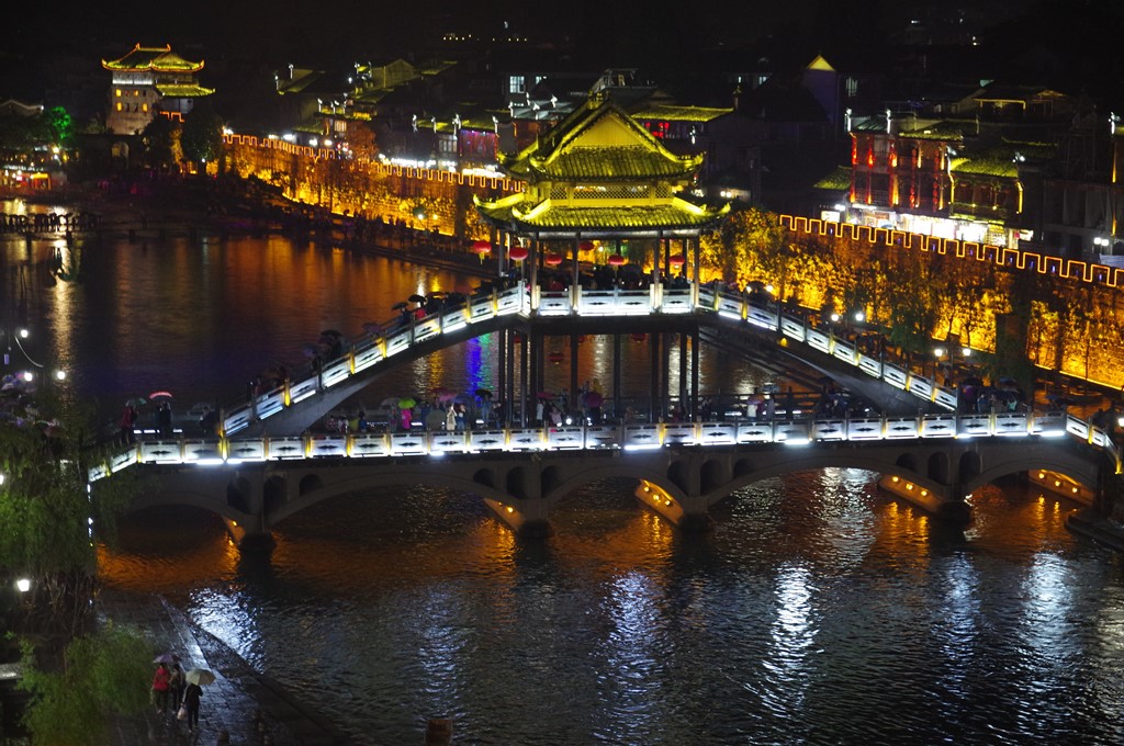 夜は古城夜景の観光です。写真15は、鳳凰大橋上からの雪橋です。