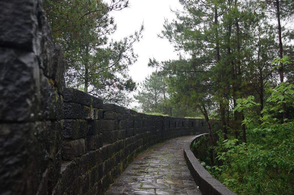 25日(火)午前の観光は南方長城です。本長城は明の万暦年間(1573~1620年)に建設が開始されて、北は湘西古丈県の喜鵲営から南は貴州銅仁境内の鳳凰県黄会営までの全長190kmに、苗族などの少数民族対策として築かれたものです。現在は鳳凰県沱江鎮の西約15kmの「金勝営」が整備されています。
