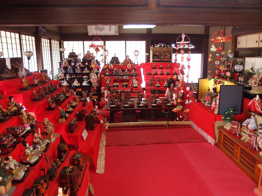 写真3は、1階の奥座敷で、ひな祭りが近く雛人形が飾られています。