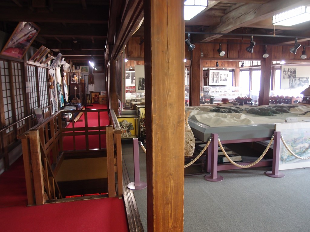 写真4は、2階で、元々は蚕室ですが、獅子ヶ谷村関係、横溝家関係、横溝家の什器・人形・家具等を展示しています。右手に見えるには獅子ヶ谷村のジオラマです。