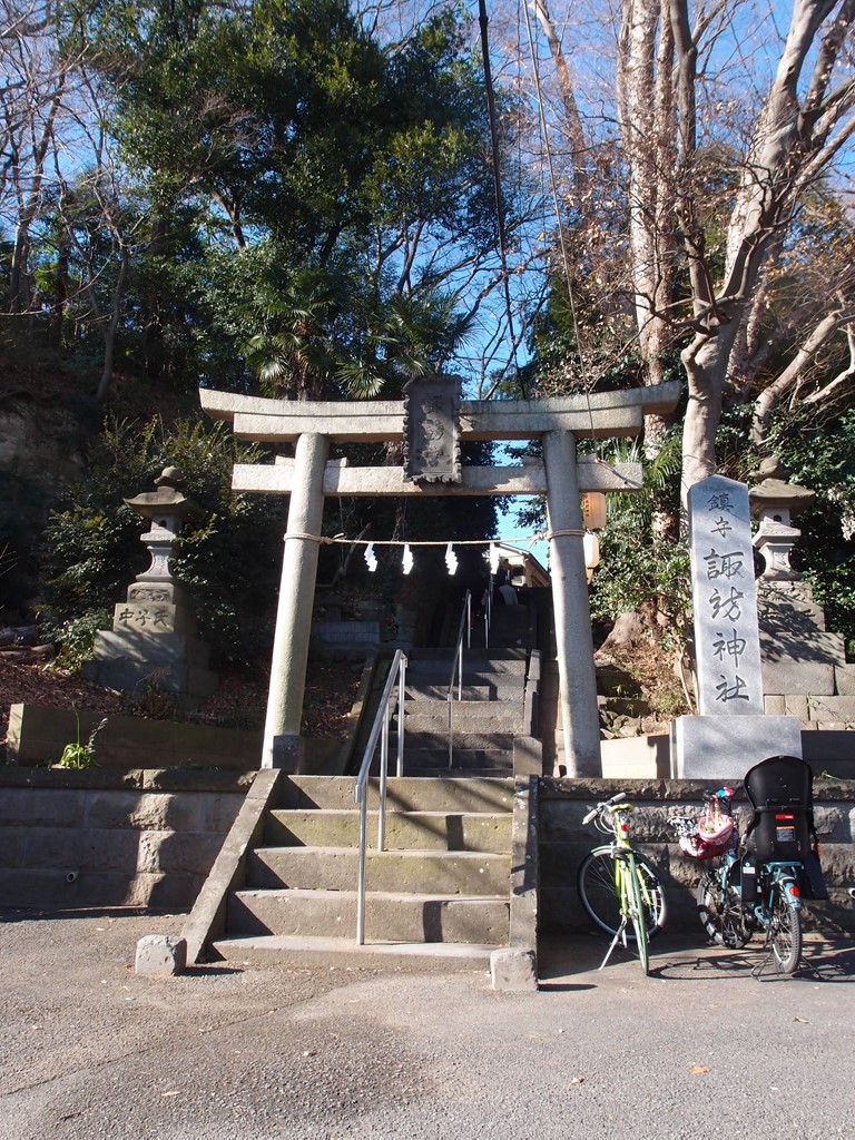 写真1は、鳥居です。神社は東横線北の小丘上にあるため、ご覧のように階段を上ります。