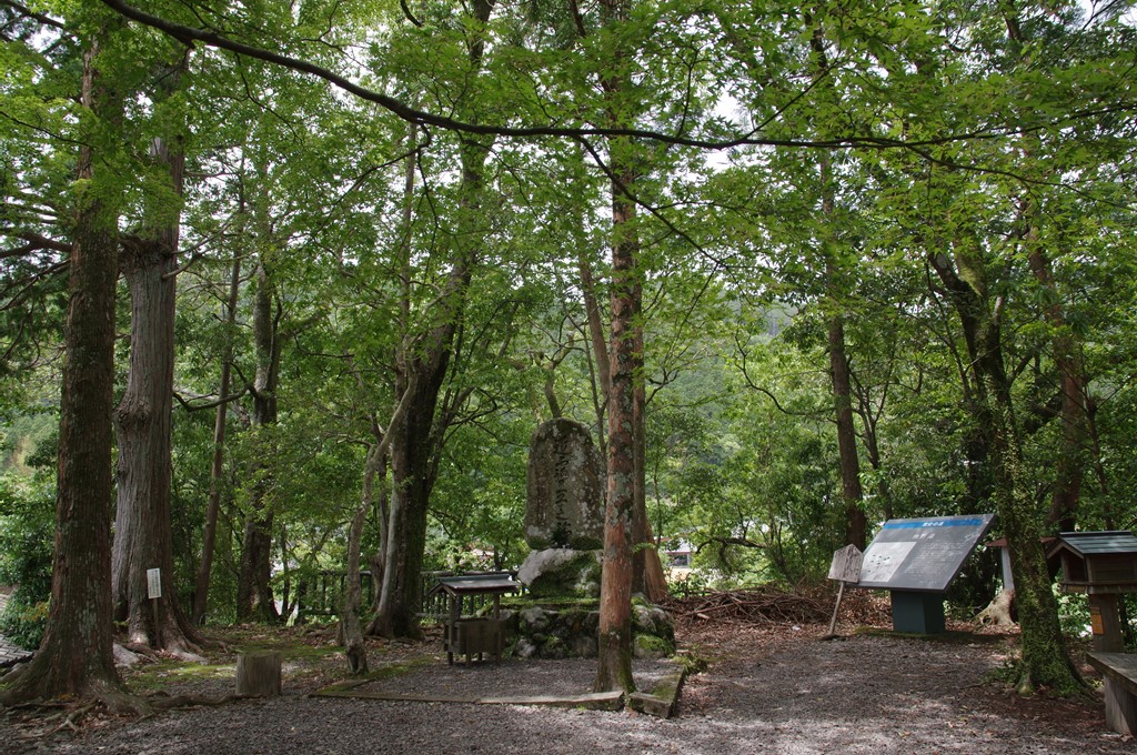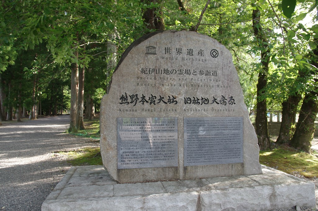 最後の写真18は、旧社地、すなわち大斎原の前にある世界遺産石碑(熊野本宮大社旧社地大斎原)です。本宮は熊野川・岩田川・音無川の合流点の中州であった旧地に鎮座していましたが、1889年(明治22)8月の熊野川の洪水で破壊されて、現在の社地に移転しました。旧地も神聖な社地の森として「大斎原」となっています。以上でハイキングと参拝は終わりです。16時50分過ぎでした。