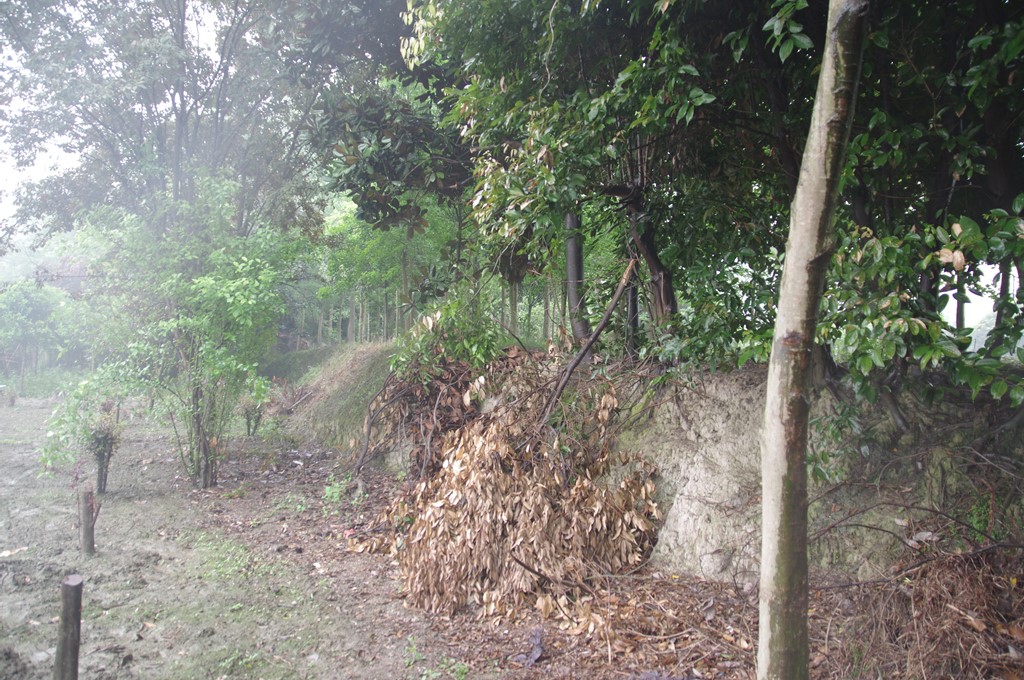 写真2は、碑の裏側に回り、古城内から城壁遺址を撮ったものです。ここは西城壁遺址に当たり、さらに長く残されていますが、あいにくの雨模様のため、さらに確かめることはしませんでした。