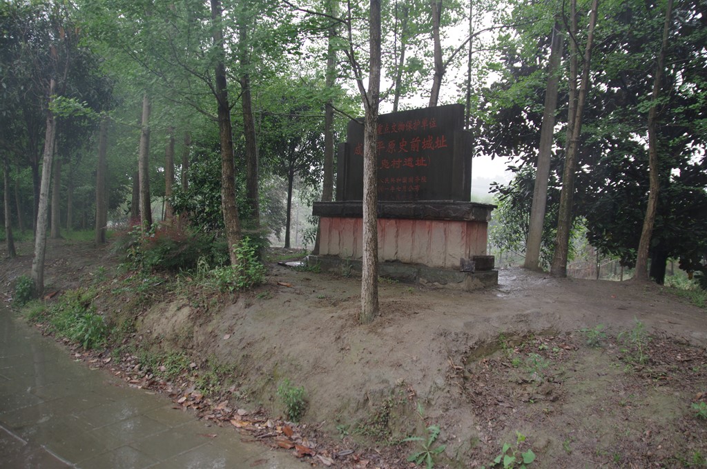 写真1は、城壁遺址上の全国文物保護単位碑のところで撮ったものです。ご覧のように、宝墩文化関係の古城は「成都平原史前城址」で統一されて、魚鳧古城遺址の正式名称は「魚鳧村遺址」です。