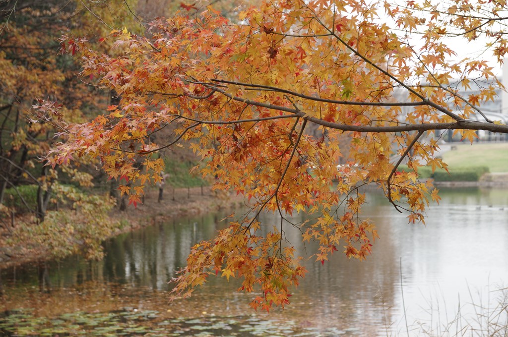 横浜市営地下鉄ブルーライン・グリーンラインのセンター南駅の西に広がる横浜市立都筑中央公園(横浜市都筑区茅ケ崎中央)の紅葉を紹介します。2018年12月7日(金)午前のものです。