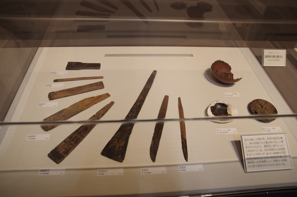 写真3は、左から漆塗刷毛・漆塗篦・漆パレットです。