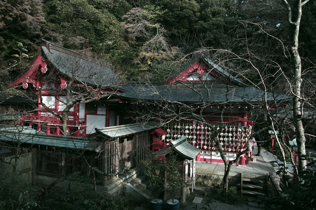 次いで、徒歩で大倉幕府跡の発掘予定地を通り、絵柄天神社に着きました。参拝を経て、重要文化財指定(2005年7月14日)の荏柄天神社本殿境内に入りました。本殿は正和5年(1316)再建の鶴岡若宮を、元和8年(1622)開始の鶴岡八幡宮造営に伴い、移築したものです。写真6は、本殿を裏右側から撮ったものです。