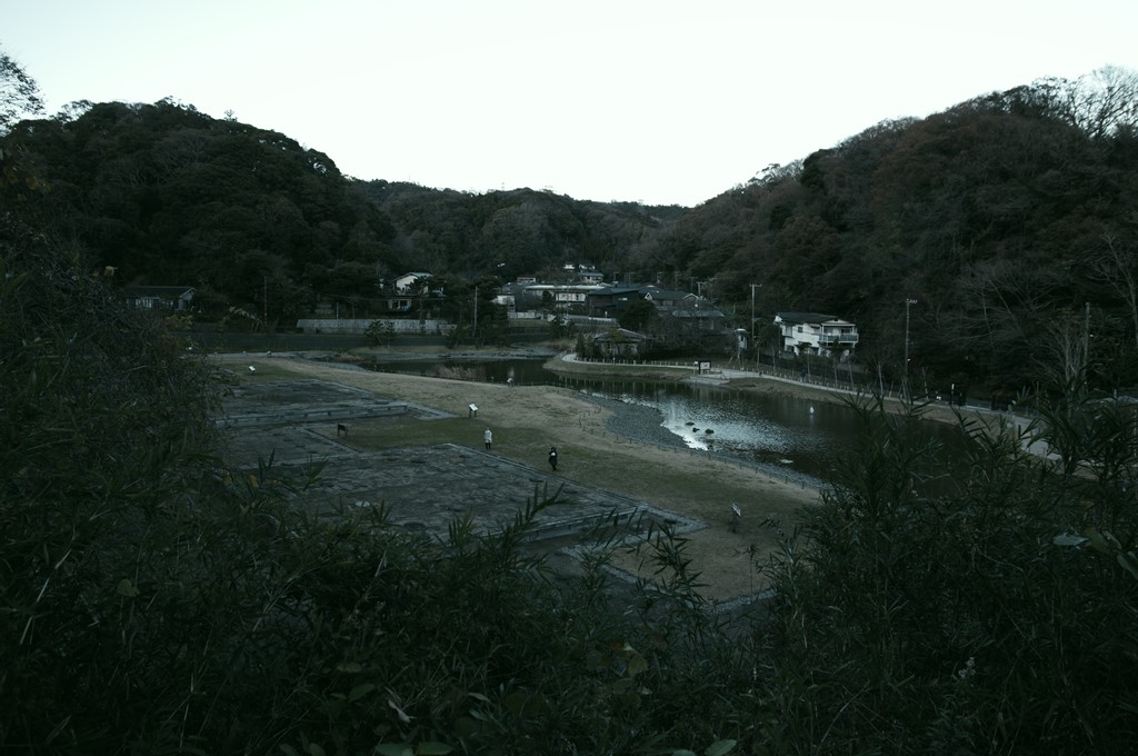 最後の見学地である永福寺遺址に徒歩で到着しました。16時を過ぎていました。写真8は、西側の山へ上る遊歩道の途上で遺址を展望できるところで撮ったものです。