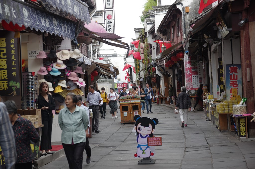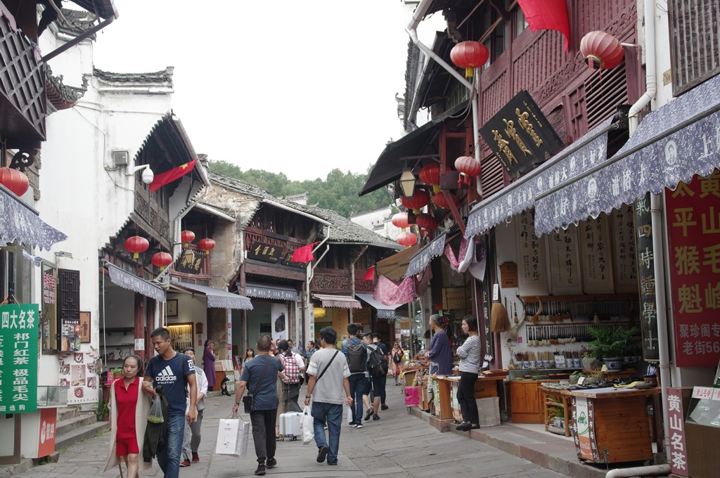 最後の写真19は、老街西側です。左に「四大名茶」との看板があるように、黄山は茶の産地で、特に黄山毛峰は十大名茶の一つとして知られています。老街には多くの茶専門店があるのです。写真にはありませんが、この代表が「王光熙茶行」です。以上で、老街散策は終わり、15時過ぎでした。