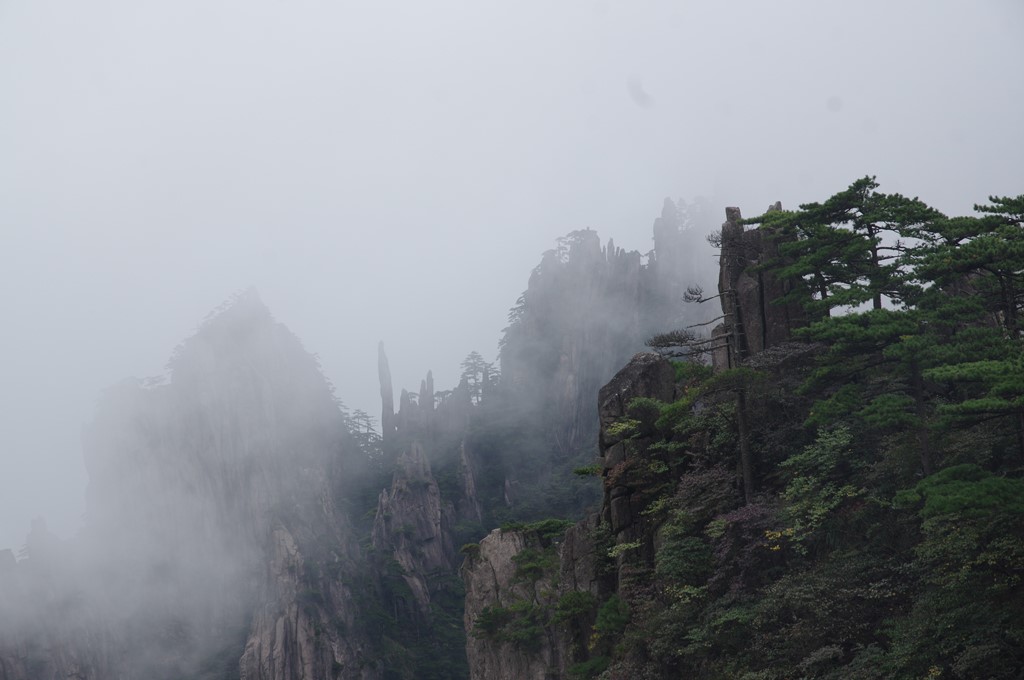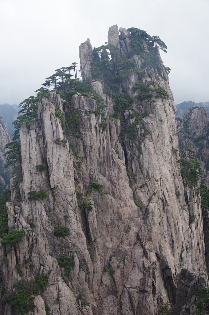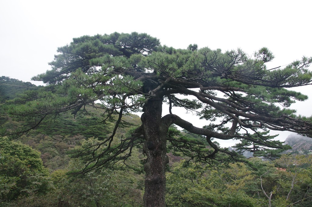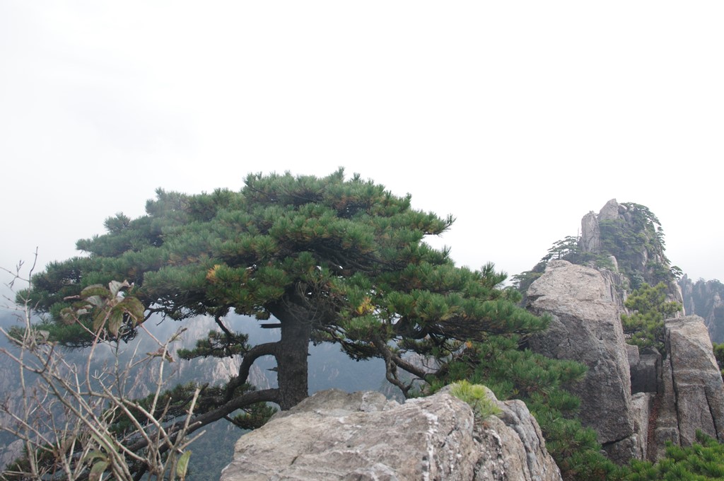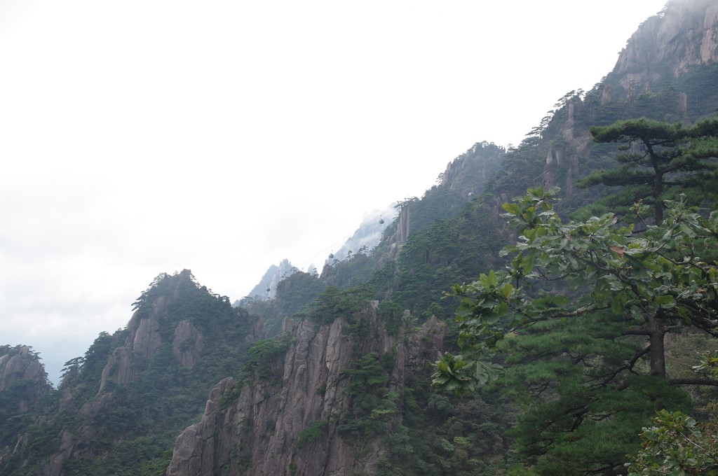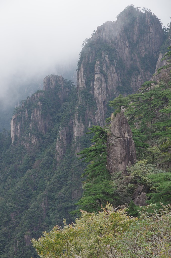 26日(水)は、引き続き黄山観光です。本来は曙光亭での御来光を迎えるつもりでしたが(ホテル掲示の天気予報では60%の確立)、前日からの曇天で見込みなしとして出かけませんでした。そして、9時に西海賓館を出発して、始信峰に向かいます。写真1は、右手前の夢筆生花です。
