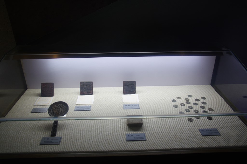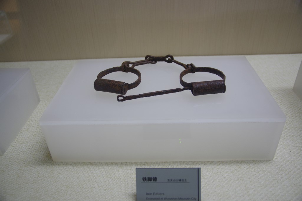 五女山景区游客中心には五女山博物館があり、五女山城遺址発掘遺物や周辺遺跡の発掘遺物が展示されています。その中から五女山城遺址発掘遺物を幾つかご覧に入れます。写真2は、鉄双孔斧等の鉄器類です。