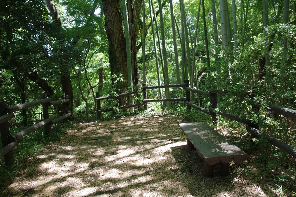 最寄り駅はJR横浜線小机駅で、下車後徒歩約15分です。駅前の横浜上麻生道を西(右)に歩き、郵便局が角の小道を北(右)に入り、横浜線の踏切を越えたところの小十字路を西(左)に歩くと、前方に第三京浜国道が見えますから、その脇の小道の一つ手前の小道に入り上っていくと、根古谷(市民の森入口・トイレあり)に至ります。ここに案内板があります。